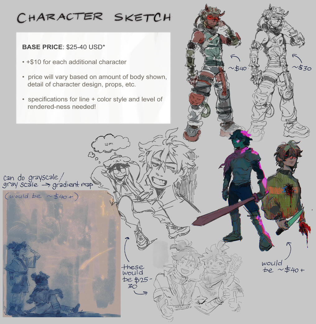 ↳ payment upfront, venmo, paypal, ko-fi accepted (USD)↳ commissions may take up to 3-4 weeks to complete. lmk if you have any deadlines that need to be made though!↳ i reserve the right to decline any requests i'm uncomfortable withprocess: